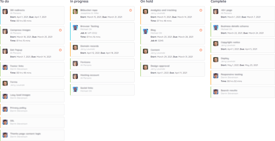 Kanban view of all tasks, providing a clear visual indication of W3 status.