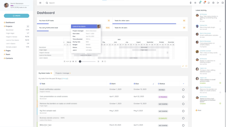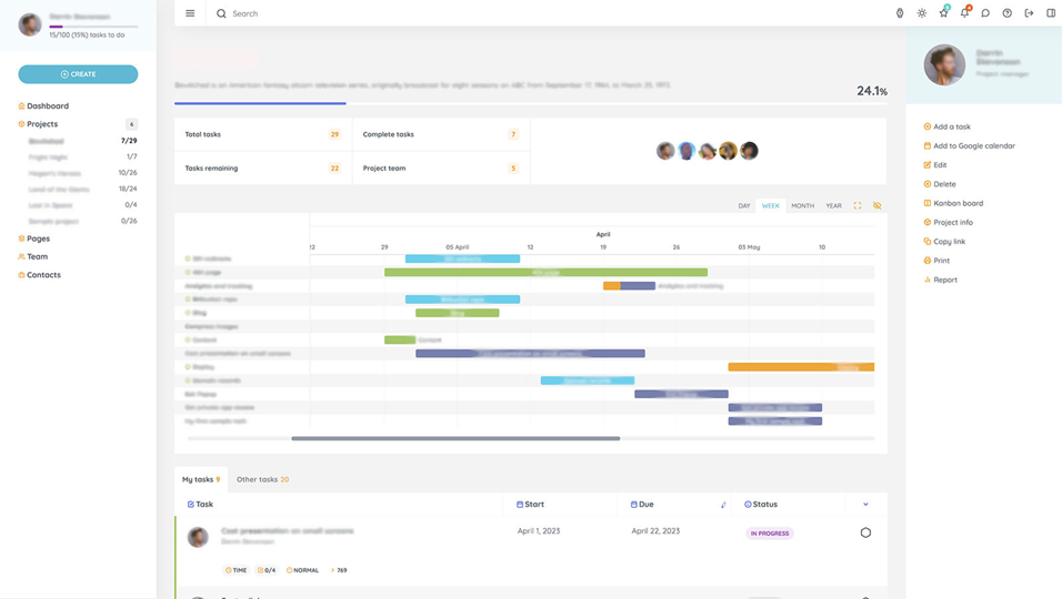 Birdseye of all your active projects and current tasks with Gantt Chart.
