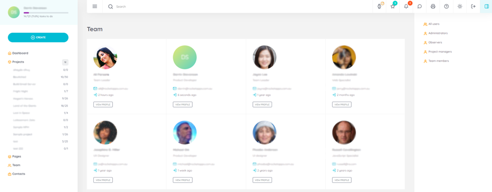 Get to know the team with contact information and project role data.